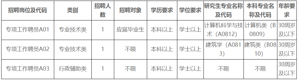 本次招聘面向社會公開招聘3名專項工作聘員,具體如下: