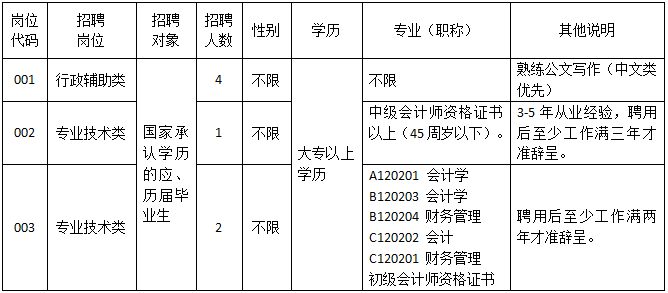 4.年齡35周歲以下,即1987年5月15日以后出生。專(zhuān)業(yè)技術(shù)類(lèi)年齡可相應(yīng)放寬,詳見(jiàn)表格(招聘崗位及有關(guān)要求)。