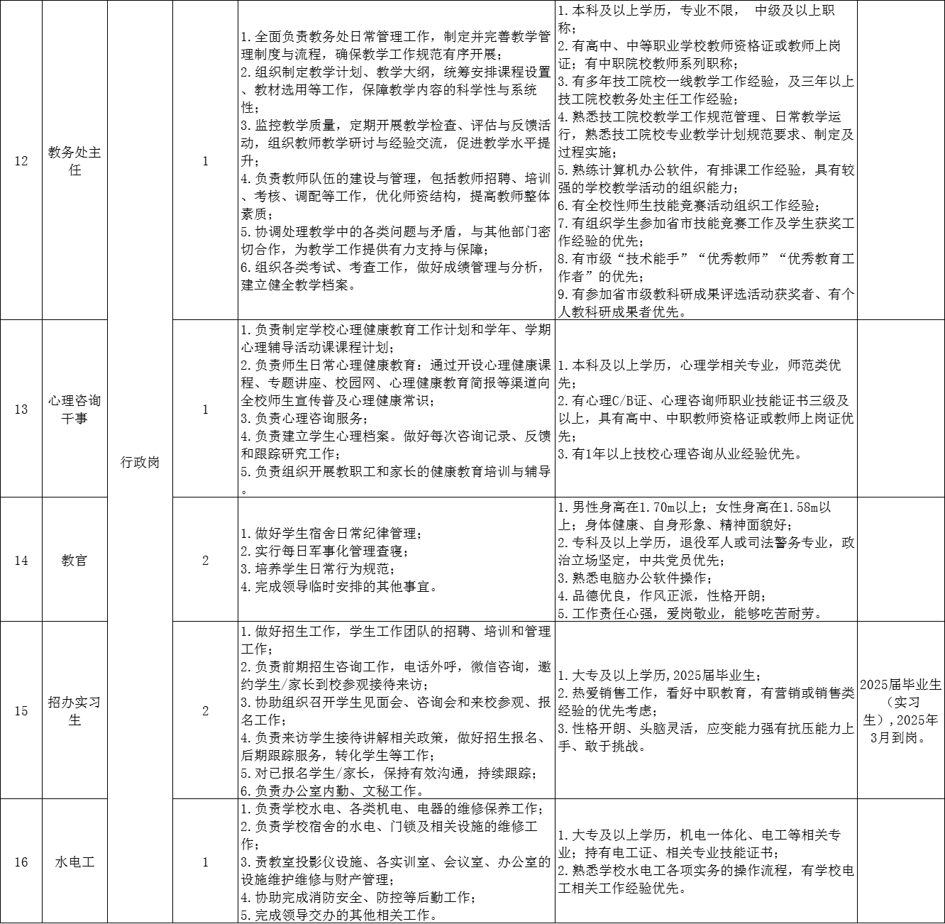 清遠市南方技工學校2025年上半年教職工招聘公告