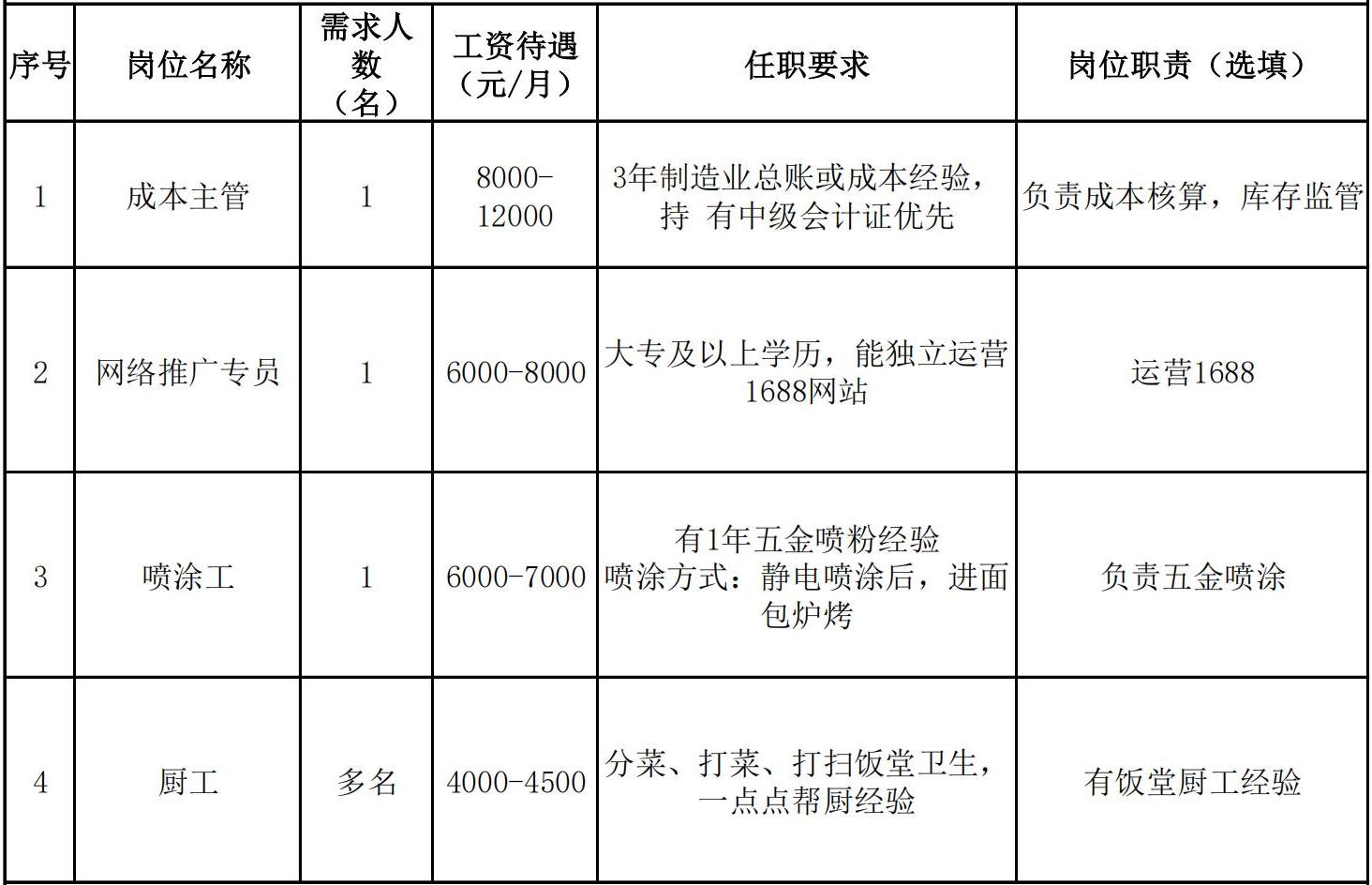 招聘崗位: