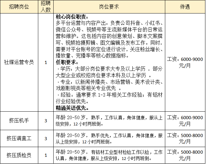 清遠(yuǎn)市金洋鋁業(yè)有公司誠(chéng)聘